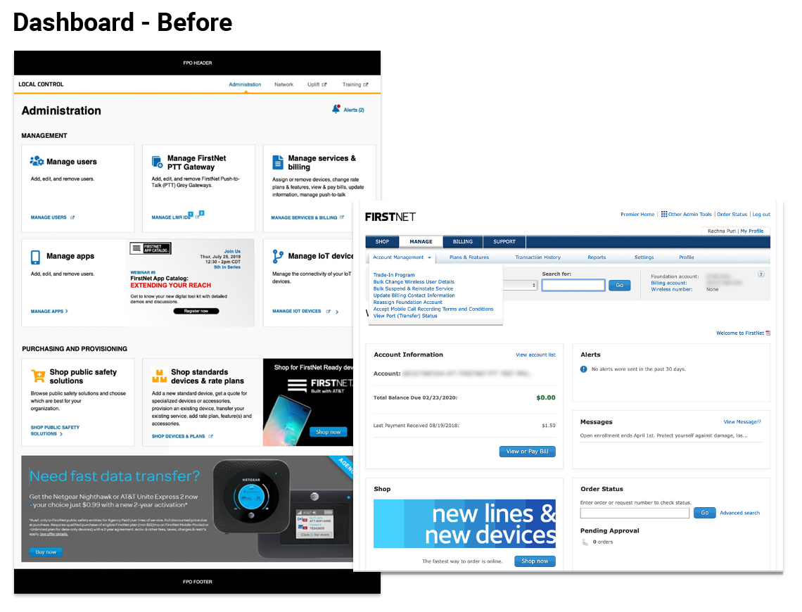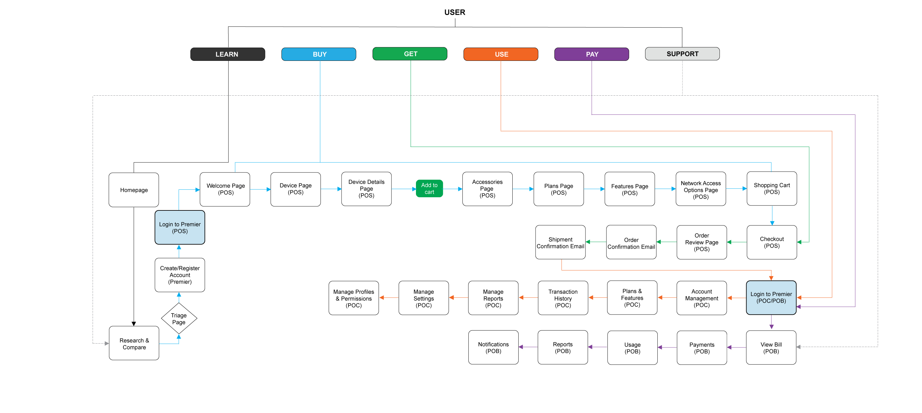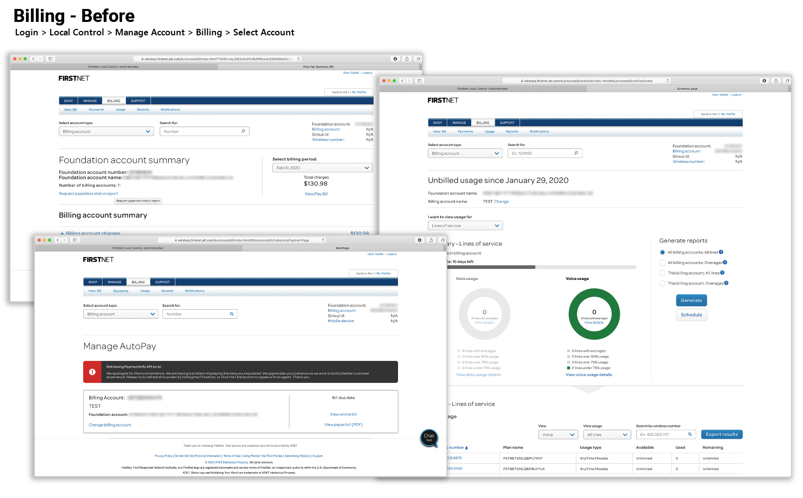 The Premier flows do not support the needs of our First Responder sub-paid customers. The Premier pages and flows were designed to help large businesses service their accounts, view and pay their bills and shop. The paths to important information and task flows on the current dashboard were unclear and overly-complicated for a First Responder sub-paid user who, in essence, is a typical consumer who expects a simple account management and shopping experience. Overly long page-load times (minutes, in some cases) add to the frustration of the user and generate calls to Care.